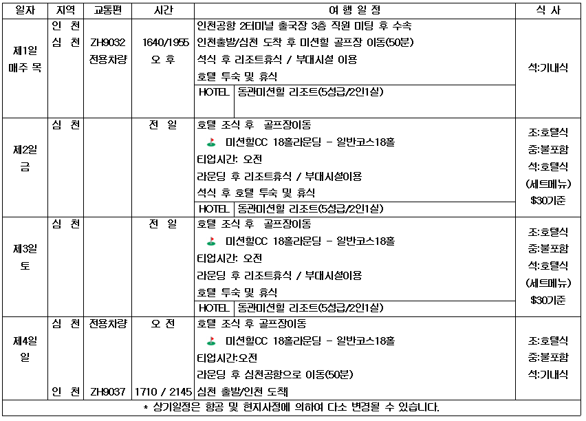 2019~20 심천미션힐/동관 3박4일 54H - 심천항공 골프여행